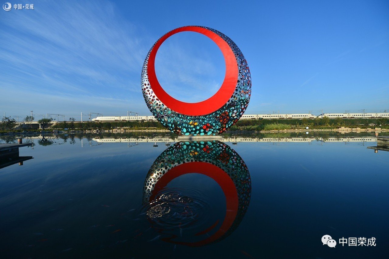 雕塑將大海與旭日融為一體,外圍色彩斑斕的海洋,襯托中間一輪紅日,體現(xiàn)大海的開放包容、曙光的朝氣蓬勃,寓意榮成為朝舞之地、希望之城。
