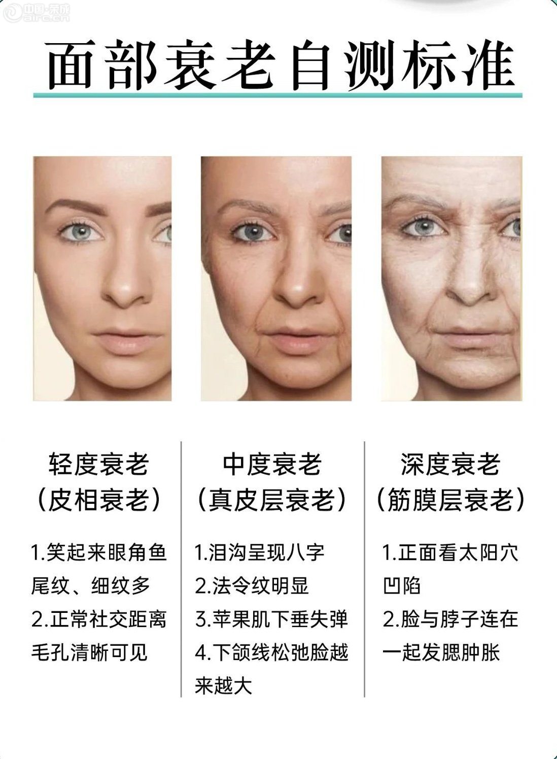 ![]() 25+仙女對鏡自查面部衰老程度,別等垂了才“搶救”! 面部衰老是三相的,分別來自:皮相(輕度)、肉相(中度)、骨相(深度) 皮相衰老表現(xiàn)是整張面皮發(fā)皺,皮膚暗淡,毛孔粗大,細紋橫生。肉相衰老主要是來自皮下軟組織和筋膜的松弛,狀態(tài)是整張臉“垮垂”,面部由大型軟組織塊壓出的凹陷紋路明顯 (法令紋,口角囊袋)面部線條紊亂垂墜。